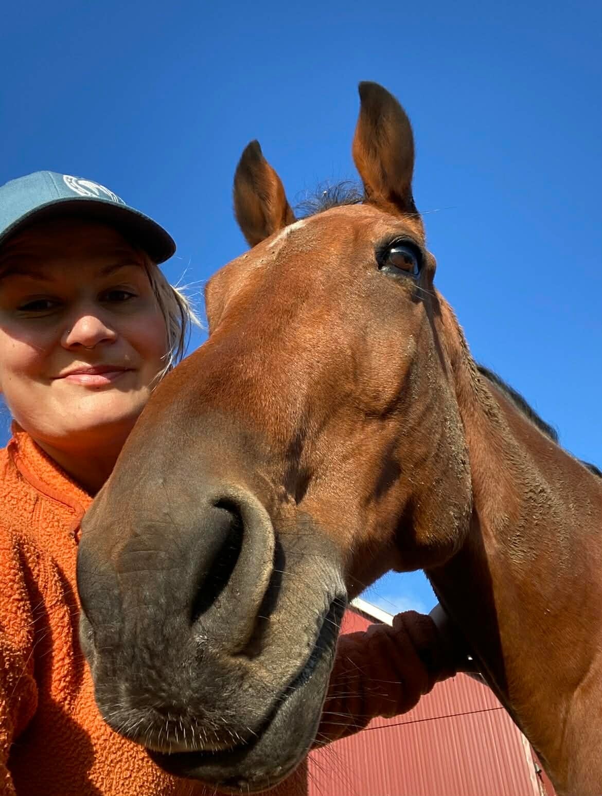 Charlie är född 2015 och är en varmblodstravare på 154cm i mkh med franskt, amerikanskt och svenskt blod. Trots viss storleksskillnad är han faktiskt släkt med Rebeccas häst! 😅
